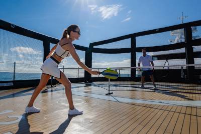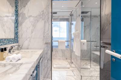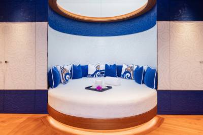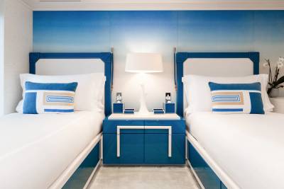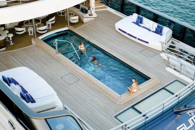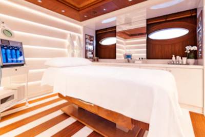 Wellness and fitness find their perfect balance aboard CC-Summer. On the lower deck, the tranquil beach club spa offers a full sensory escape, complete with amassage room, traditional hammam, sea terrace, and a dedicated hair and beauty salon, all just steps from the water. For guests looking to stay active, the fully equipped gym provides state-of-the-art machines and free weights, all framed by sweeping ocean views. Whether you’re indulging in a restorative treatment or chasing a morning endorphin boost, CC- Summer. ensures you feel your best- inside and out.