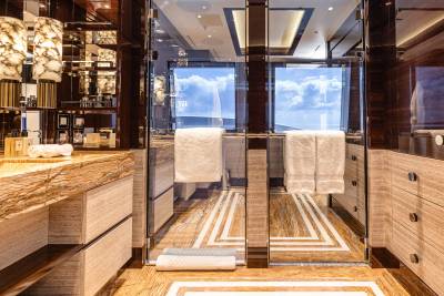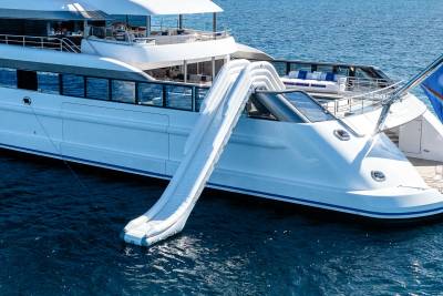 CC- Summer brings high-energy fun to the forefront with an unmatched suite of outdoor sports and entertainment. Guests can take on a friendly match with a basketball or pickleball court, then cool off with a splash down the custom waterslide straight into the sea. As the sun sets, the action shifts to the outdoor firepit lounge, perfect for cocktails and conversation under the stars. For a more interactive culinary experience, the Teppanyaki grill offers a front-row seat to sizzling flavours and chef-led theatrics. From day to night, this superyacht is built to entertain at every level.
