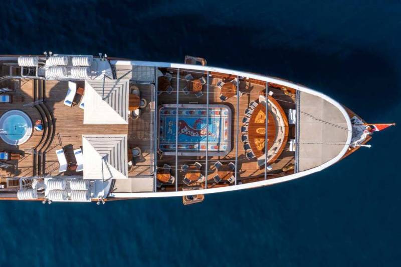 With the capacity to sleep 34 guests, she features 5 decks connected by an elevator. The iconic Ari’s bar and maria callas piano lounge make excellent cocktail spots. Guests can enjoy treatments at the onboard Life Evolution spa. Her pool converts to a dancefloor and a Jacuzzi deck offers further relaxation onboard.